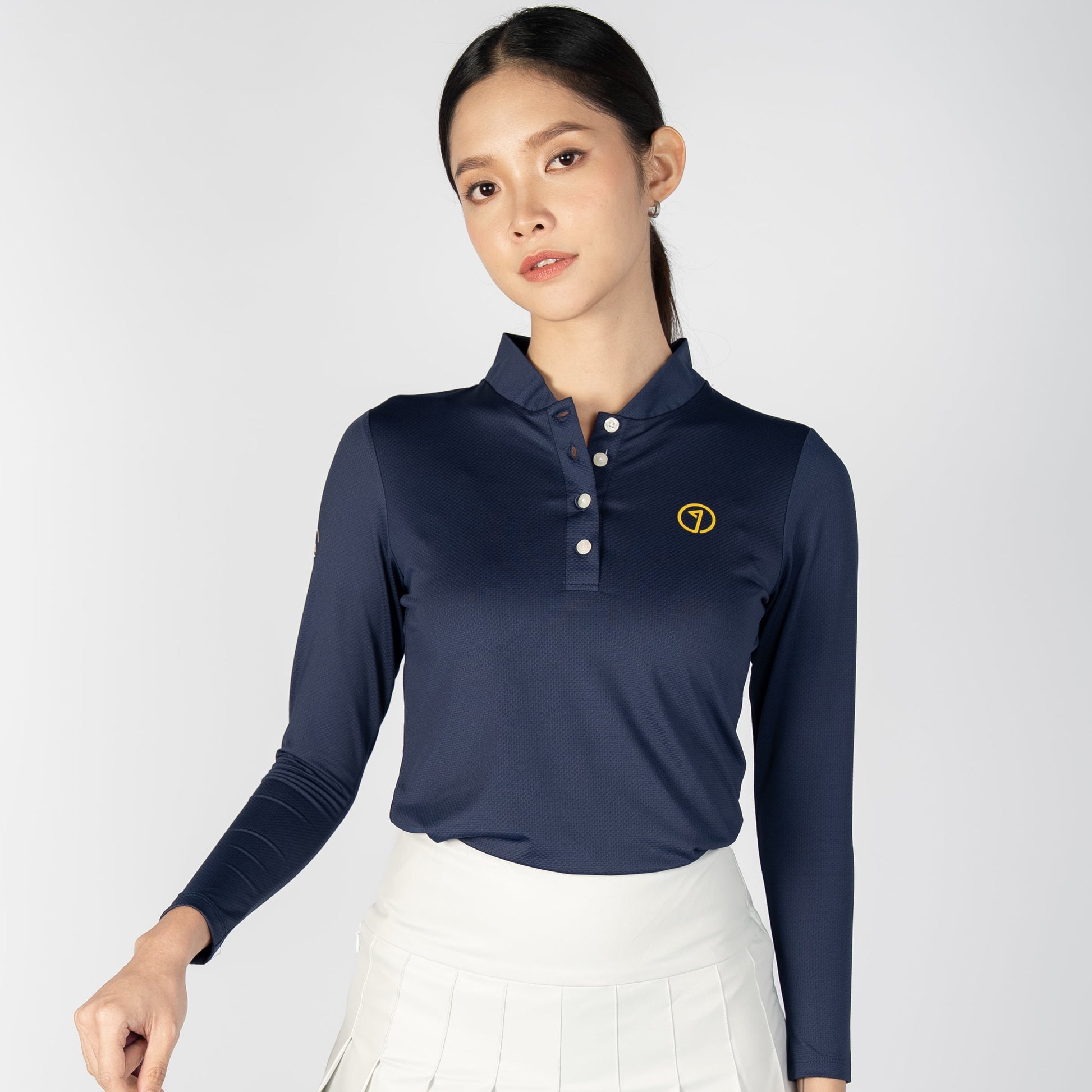 A deep, modern navy inspired by the stillness of the late-night fairway. A refined cool tone that looks sharp in daylight and effortlessly sleek under clubhouse lights. It’s versatile, quietly confident, and pairs with just about anything—your go-to color when you want to look composed, focused, and ready to play your best.